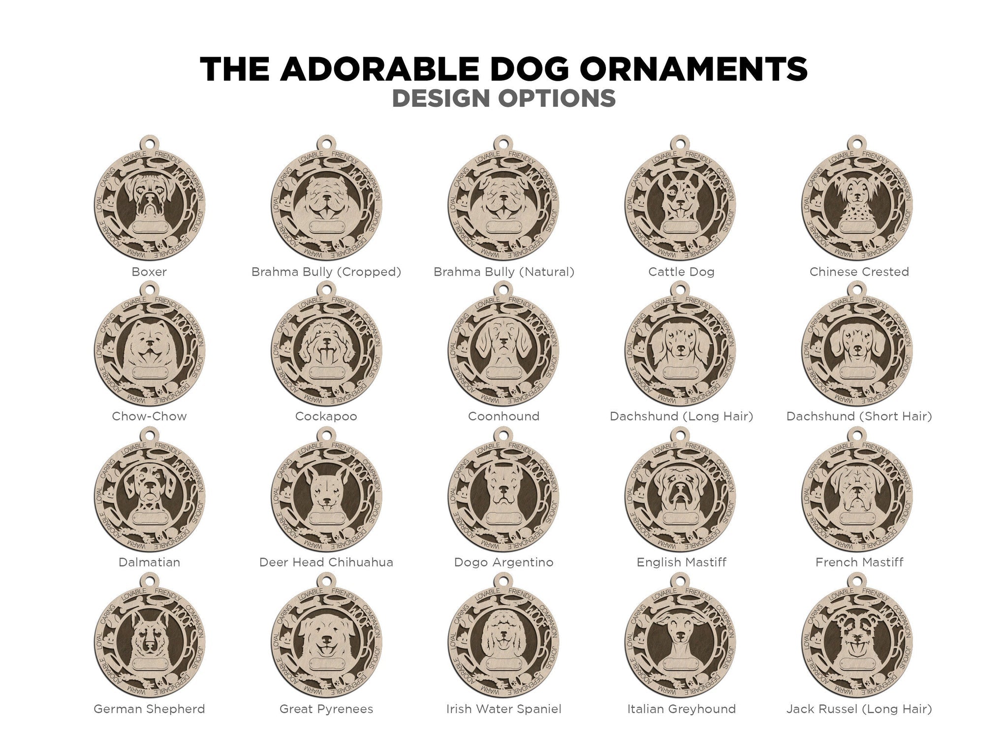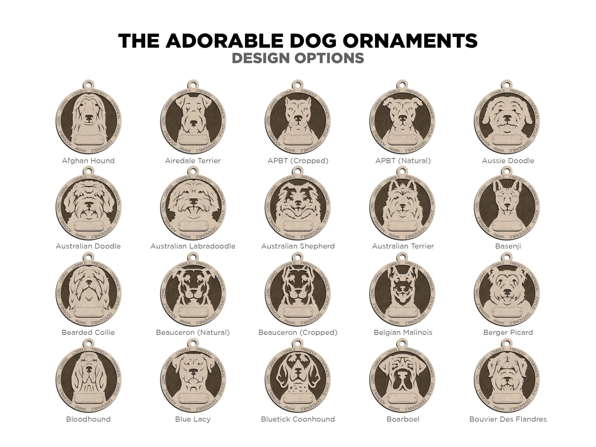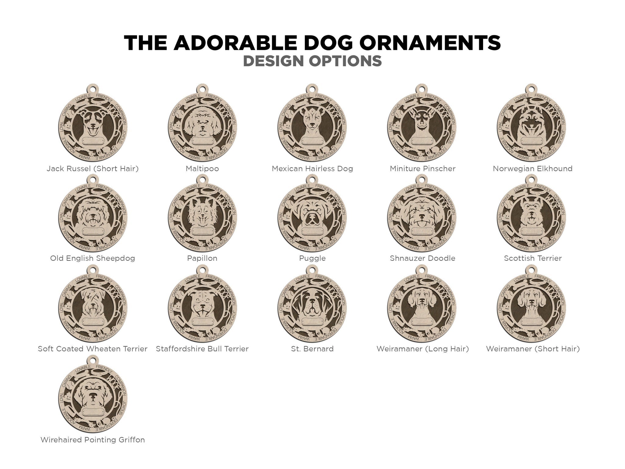 The Adorable Dog Ornaments feature 50 different Dog breeds that can be personalized with your pets name or a special message.